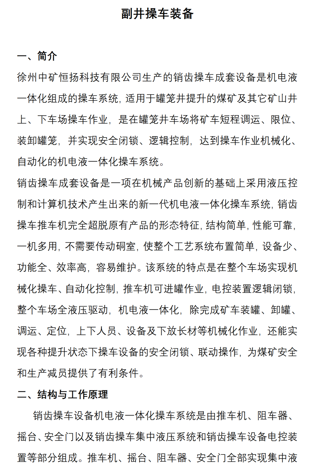 副井操車及提升電控一體化系統
