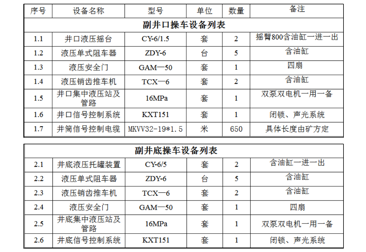 副井操車裝備
