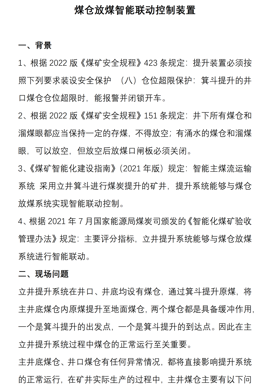 煤倉放煤智能聯動控制裝置