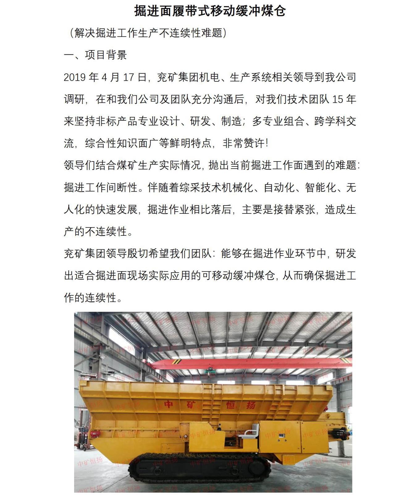 掘進面履帶式移動緩沖煤倉